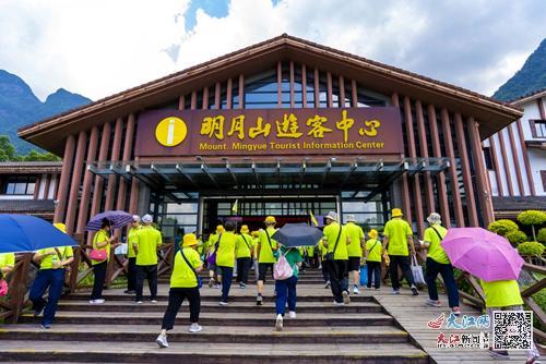 随后,该旅行团来到明月山旅游区,欣赏美好的自然风景,观云谷飞瀑,游青云栈道、月亮湖,感受大自然的水秀山清。