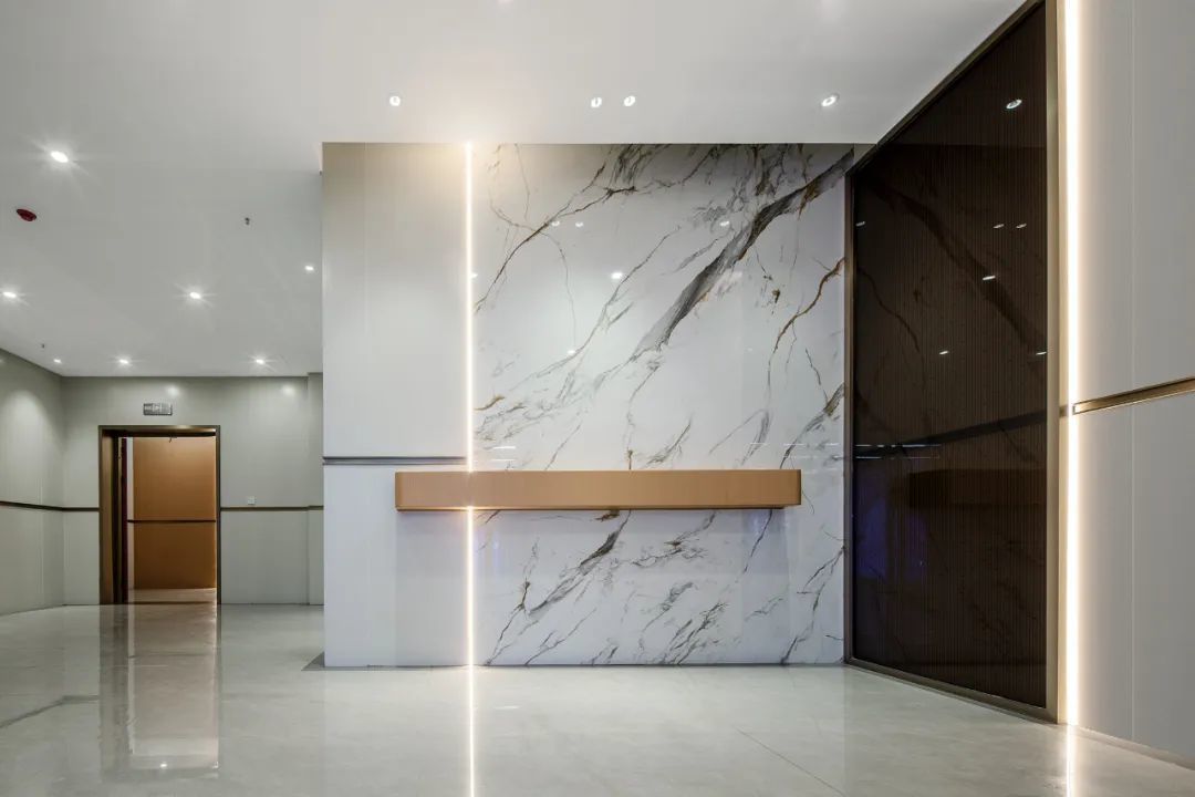 精装地下及地上一层入户电梯厅,其他楼层公共电梯厅墙面全部贴砖交付,尊享奢华美学质感。