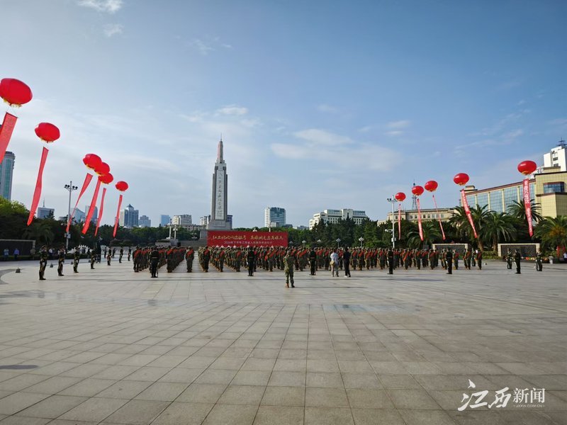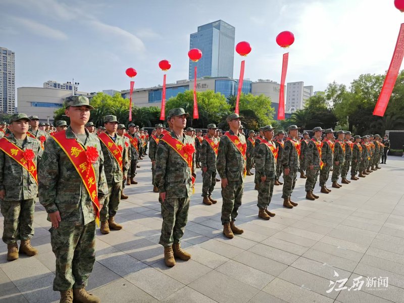 江西新闻客户端讯(全媒体记者曾宜奇)红土地吹响出征号,英雄城走出英雄兵。9月18日上午,2024年下半年江西省入伍新兵欢送仪式在南昌八一广场举行。来自南昌市的550名入伍新兵代表身披绶带、胸戴大红花,带着父老乡亲的殷切嘱托,即将迈入军营。