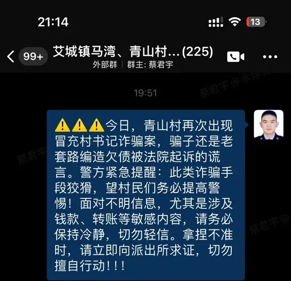 在村民微信群向村民及时发布反诈预警
