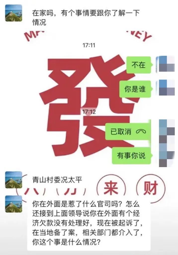 突然收到“村干部”的微信消息