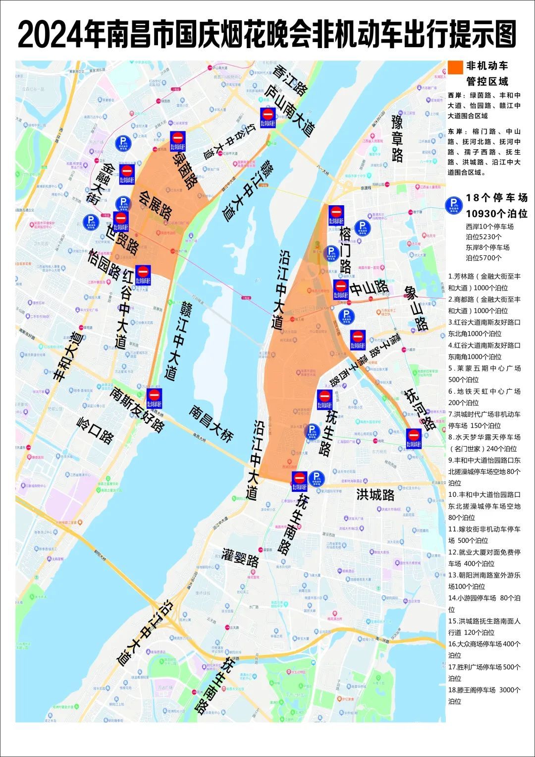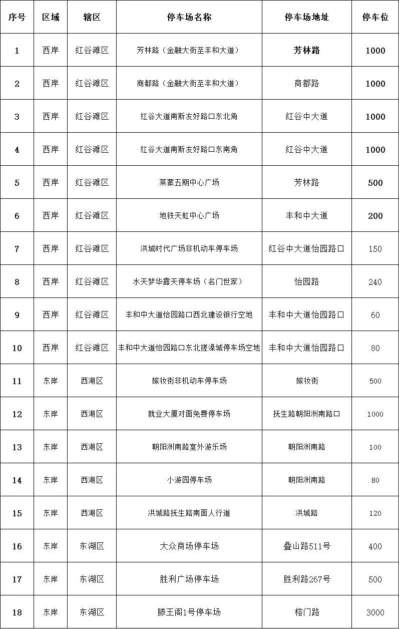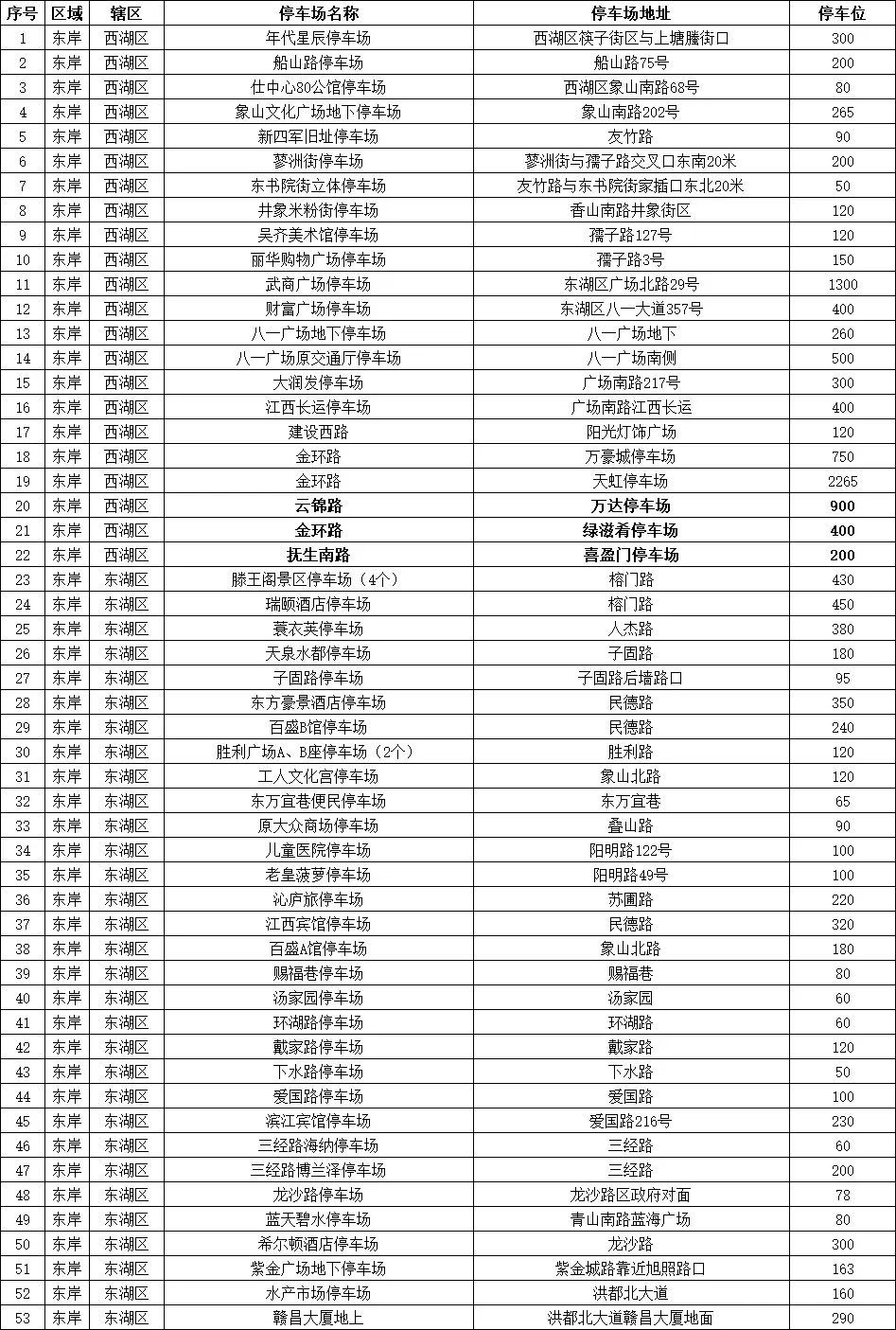 东岸(东湖区、西湖区)8个停车场,