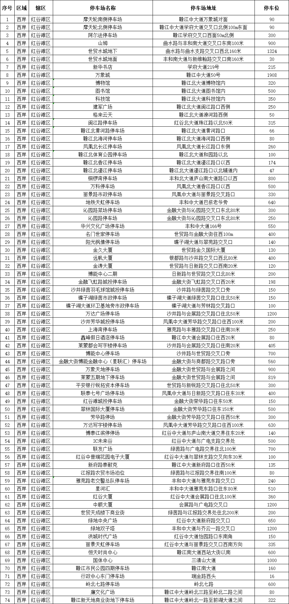 西岸(红谷滩区)74个停车场,
