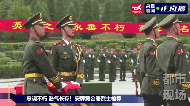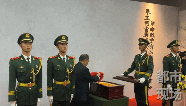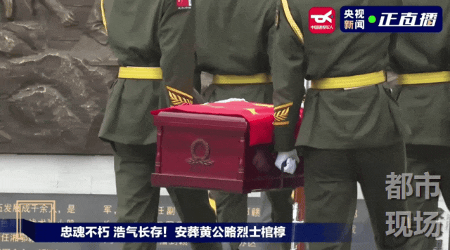 礼兵将棺椁上覆盖的国旗交给烈士家属