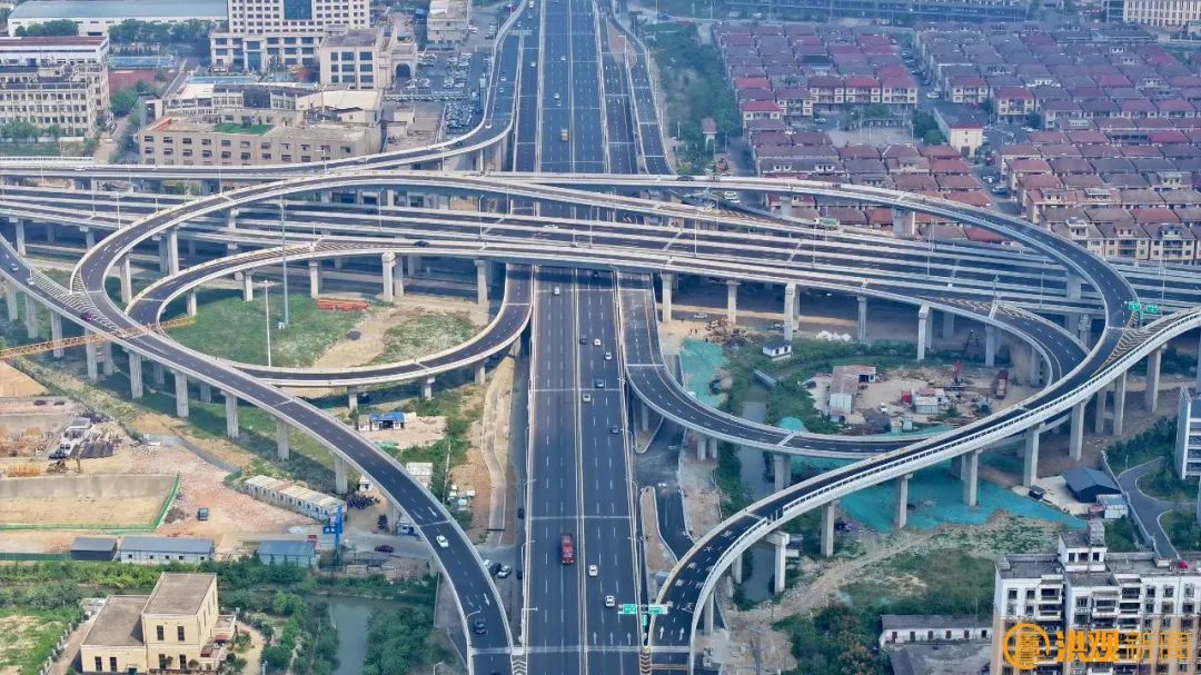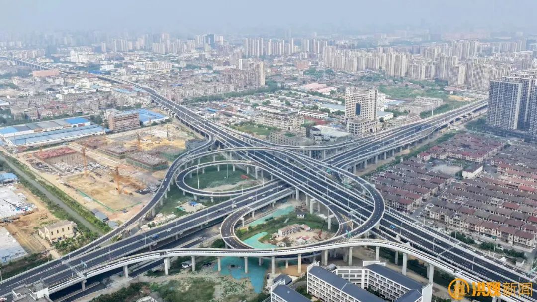从洪腾高架一路向东,不多时,一座气势恢宏的立体式互通立交呈现在眼前。“这立交四通八达,很壮观吧!”孔璞的话语中透着自豪。
