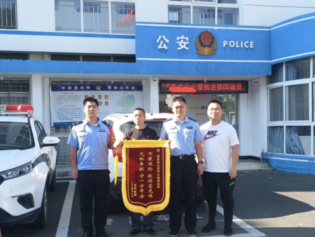 “看到你们的那一刻,我的心立马踏实了。有困难,找警察,靖安公安的民警真是勇敢又暖心!”10月5日,胡先生为中源派出所送上锦旗。
