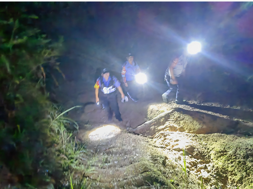 10月3日晚7时左右,我局中源派出所接游客胡先生报警求助,称其在独自攀登九岭山的途中迷失方向。“别慌,原地休息保持体力,我们已经在来接你的路上了!”接警后,民警先与被困游客保持联系缓解安抚其紧张情绪,同时立即联合中源乡专职消防队及连心志愿者组成救援小队上山搜救。