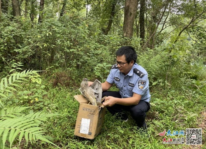 大江网/大江新闻客户端讯 陈莹 全媒体记者乐伟聪报道:日前,吉安县公安局森林分局接到辖区居民的求助,称其家中飞进一只“怪鸟”可能是保护动物。接到报警后,森林分局民警迅速行动,立即驱车前往该居民家中。到达现场后,民警小心靠近这只大鸟,发现该不明鸟类无法飞行怀疑已受伤。