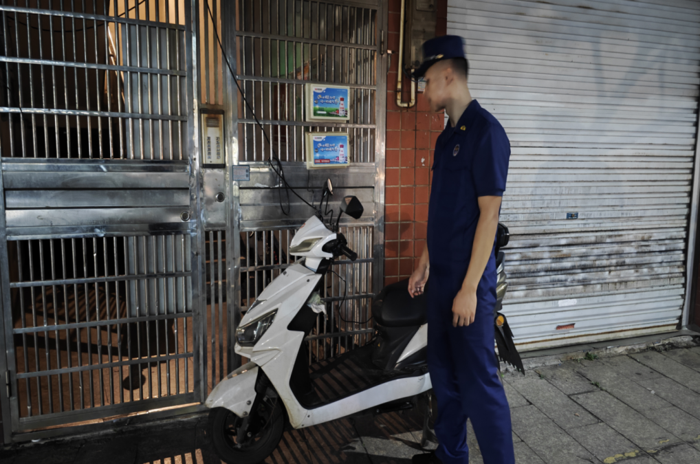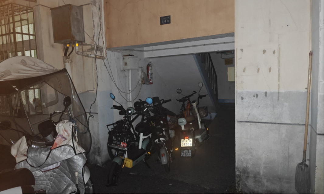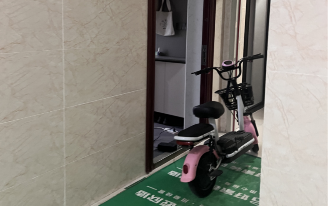 存在隐患:电动自行车违规停放、堵塞疏散通道