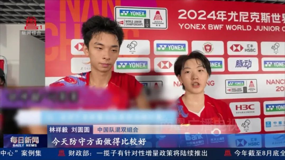中国队混双组合林祥毅/刘圆圆:“今天防守方面做得比较好,也敢于大胆地去和对手对抽。出手会比较果断,都打到这了,肯定是冲击冠军。”