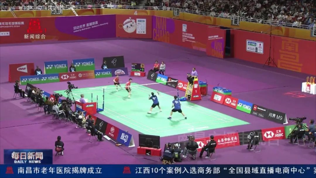女单方面,江西本土选手阴伊晴苦战三局,以21:16、17:21、23:21战胜队友戴琴艺,晋级决赛。