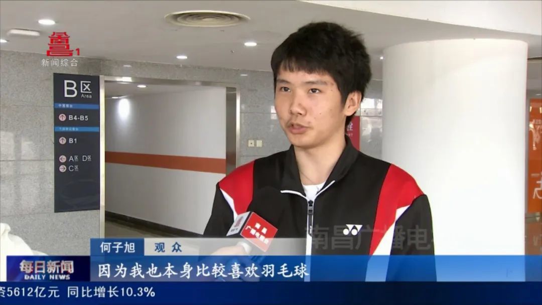 观众何子旭:“因为我也本身比较喜欢羽毛球,也一直都关注,(感觉)氛围特别好,然后打得也很精彩。”