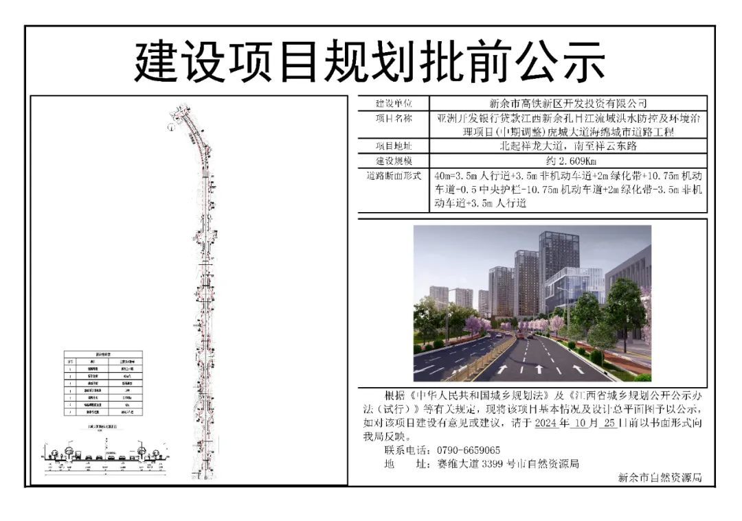 近日,新余市自然资源局官网对外发布了亚洲开发银行贷款江西新余孔目江流域洪水防控及环境治理项目(中期调整)虎城大道及张固路海绵城市道路工程批前公示。