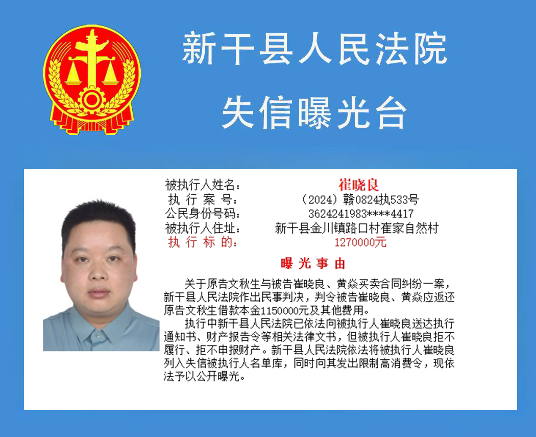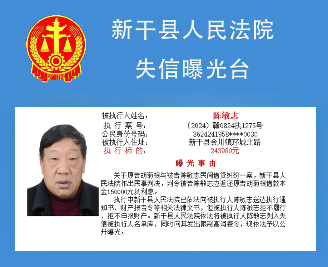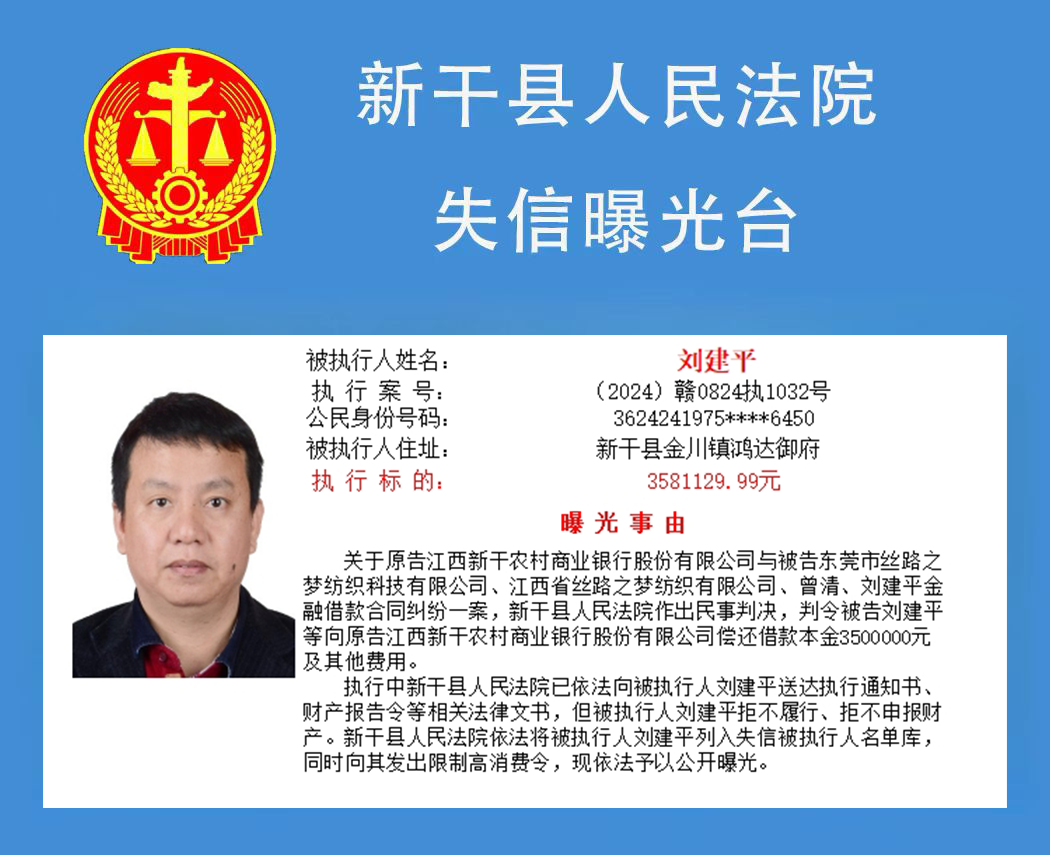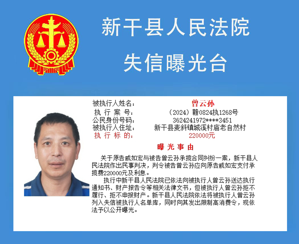二、对以上失信被执行人名单信息内容,如有关当事人有异议,可向新干县人民法院书面申请更正。