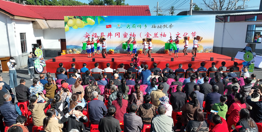 活动现场,热闹非凡。以丰收为主题创作的精彩歌舞节目接连登台,舞出了丰收的韵律,传递着丰收的喜悦。之后,趣味十足的多轮现场抽奖、剥柚子比赛等环节,赢得在场观众阵阵欢笑。活动现场还为十佳“金柚园”进行了颁奖。