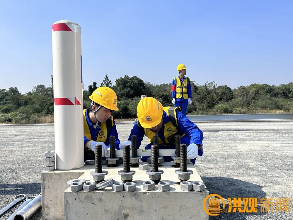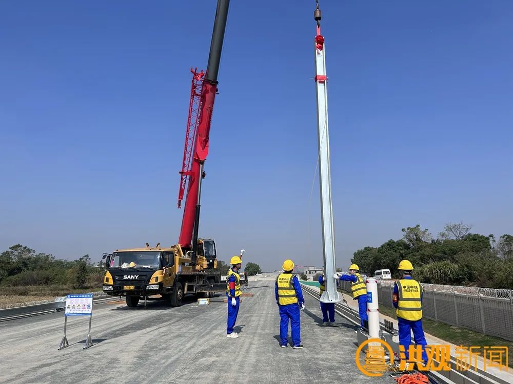 今天组立的首杆接触网支柱 高8.5米,重约1.46吨,是昌九高铁“四电”工程的 首个重要节点 ,“第一杆”的成功组立,标志着昌九高铁强电工程施工迈出了关键的第一步。