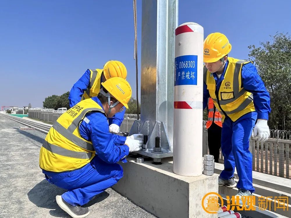 昌九高铁接触网“第一杆”的成功组立,