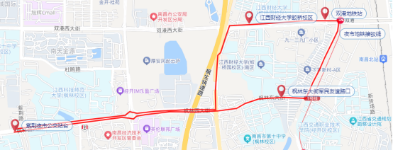 记者了解到,紫荆夜市定制公交专线走向为:枫林西大街-军民友谊路-双港东大街-庐山南大道-枫林西大街(全程6.8公里),设置4个停靠站点,包括枫林西大街紫荆路口、枫林东大街军民友谊路口(下罗新村)、双港地铁站、江西财经大学蛟桥校区。该线路营运时间为周五、周六、周日及节假日20:30-22:30,票价实行两元一票制。
