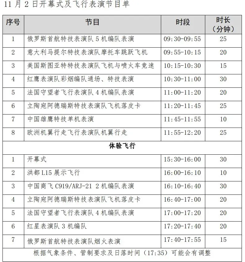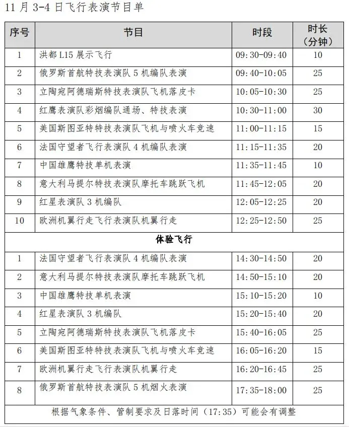 飞行表演节目单: