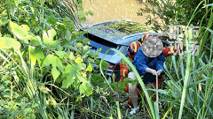 景德镇浮梁县椿年街消防救援站灭火救援二班 班长 柯聪: 其中车内一名男子已经自行脱困,还有3名人员在车上,因为怕车子晃动,导致车头进一步往前,坠入水里,3名人员在车里面等待救援。