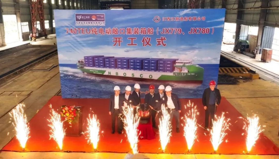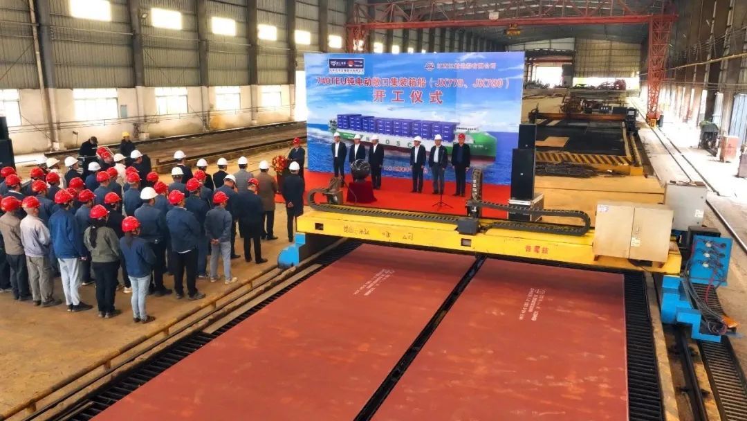 11月5日,由落户湖口县的江西江新造船有限公司为宁波远洋运输股份有限公司建造的全球最大、国内首制的万吨级纯电动高端智能海船——2艘“740TEU纯电动敞口集装箱船”举行开工仪式,标志着全球最大、国内首制的万吨级纯电动高端智能海船正式进入建造阶段。