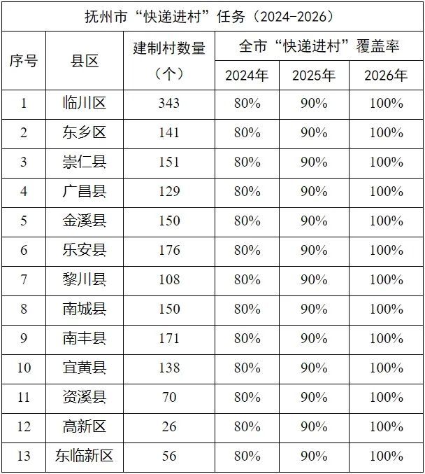 抚州市“快递进村”任务(2024-2026)
