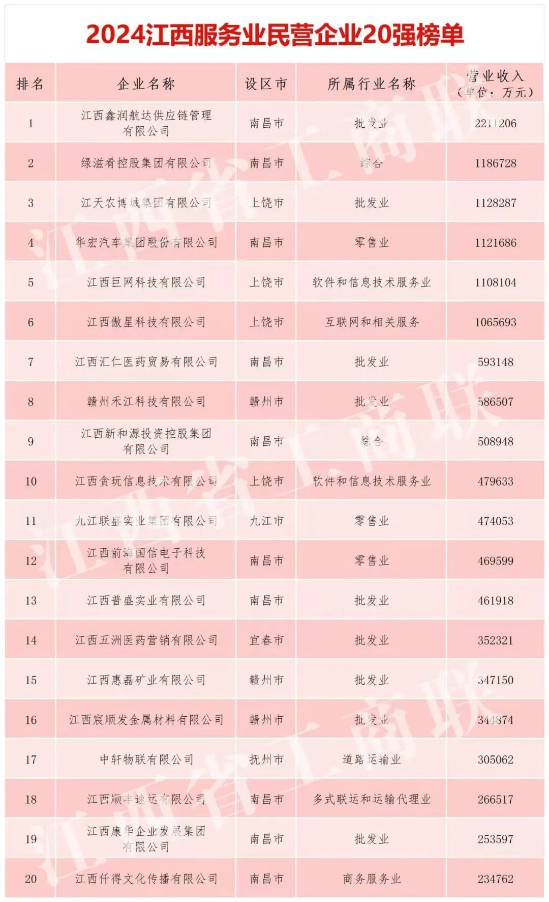 2024江西服务业民营企业20强榜单中,南昌上榜企业占了一半。(洪观新闻记者 吴跃强 刘帆)