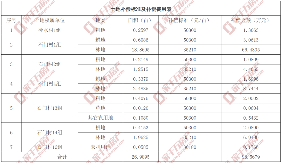 经调查确认,本次拟征地总面积26.9895亩。其中耕地2.2440亩,林地24.5670亩,草地0.0120亩,其他农用地0.1080亩,未利用地0.0585亩。按土地权属分:冷水社区1组0.2597亩,石门社区1组19.4781亩,石门社区2组1.4664亩,石门社区4组2.8214亩,石门社区13组0.5276亩,石门社区14组2.3778亩,石门社区16组0.0585亩。调查具体结果见附件2。