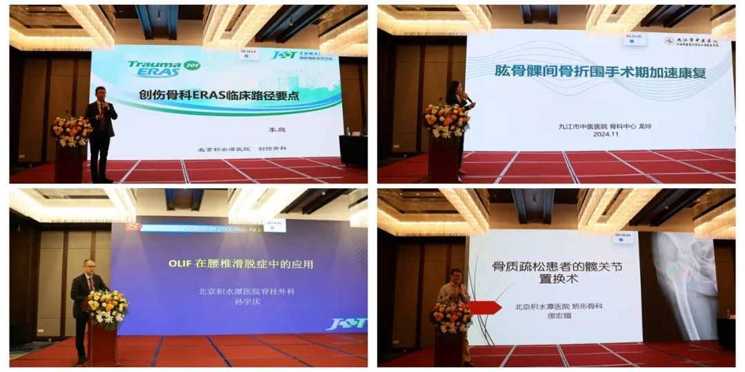 签约仪式后,北京积水潭医院(国家骨科医学中心)骨科专科联盟-骨科加速康复外科(ERAS)分联盟李庭教授、孙宇庆教授、邵宏翊教授、贾伟教授、冯薇教授、张文超教授、米萌教授、贾云洋护士长、孙志坚医生、谭哲伦医生,九江市中医医院骨伤一科兼骨科中心主任龙玲、麻醉科主任张春霞、护理部主任李娜等专家分别进行了精彩授课交流。