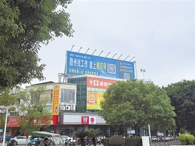 10月21日,记者来到现场发现,在赣州市章贡区八一四大道和京九路的交叉路口,设立了一块十分显眼的户外广告牌。记者观察发现,广告牌为钢架结构,目测长度约20米,宽度约6米。随后,记者来到兴国路和长冈路交叉路口,发现城央一品小区楼上也安装了一块户外广告牌,制作工艺、大小与前一块广告牌类似。李先生表示,上述两处户外广告牌为同一家公司经营。