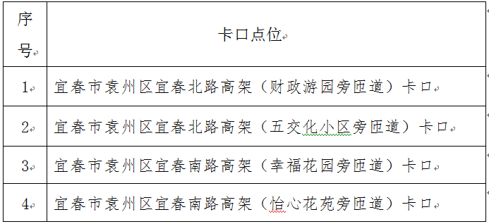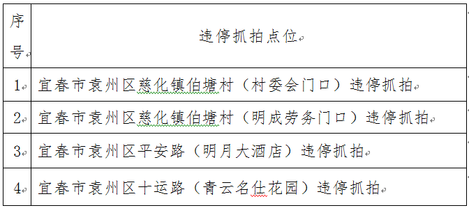 为规范行车秩序,促进文明交通,有效预防道路交通事故,宜春市公安局交通警察支队袁州大队经研究决定,对以下路段点位实施电子警察抓拍,现将相关点位信息和抓拍违法行为通告如下: