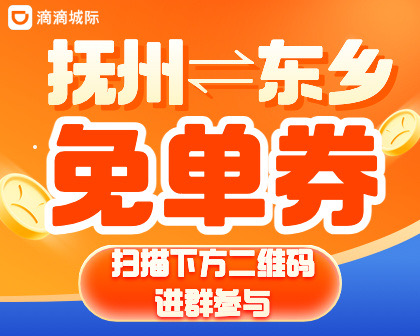 活动内容:扫码加入抚州动车站⇌东乡高铁站线路乘客群,每日10点半群内发起抢红包活动,抢到红包的用户均可获得一张抚州动车站⇌东乡高铁站线路单程免单券,有效期14天;(具体活动详情见群通知)
