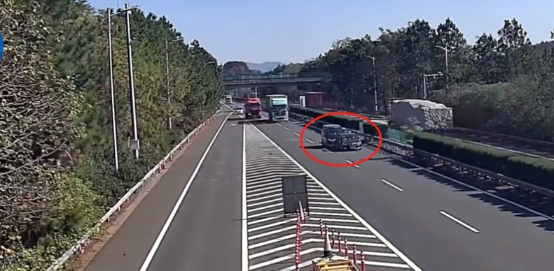 2024年11月27日,济广高速江西南丰段。危某驾驶一辆黑色小车在快车道行驶,行驶至南丰出口时错过了路口,竟直接刹车减速停车。后方一辆商务车躲避不及,与其发生碰撞。事故造成两车受损,所幸没有人员受伤。