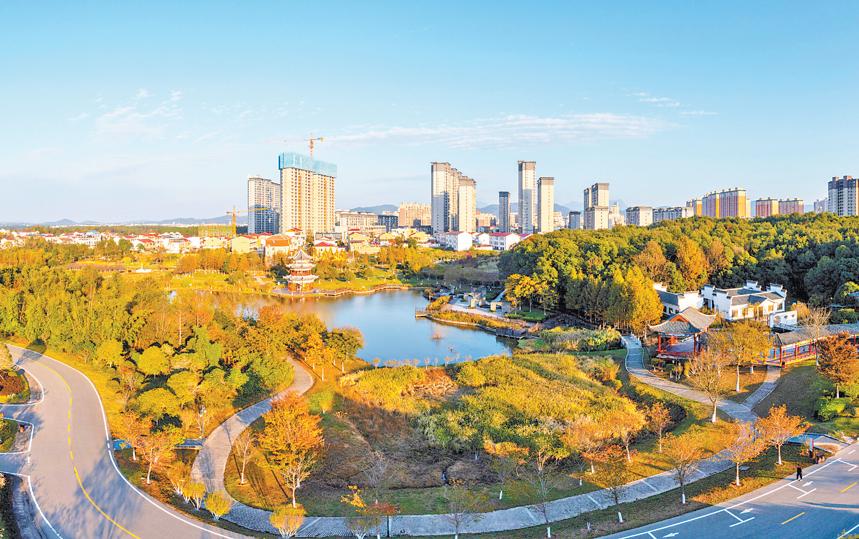 近日,金溪县香谷小镇香樟森林公园,水清岸美,色彩斑斓,宛如画卷。
