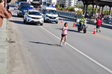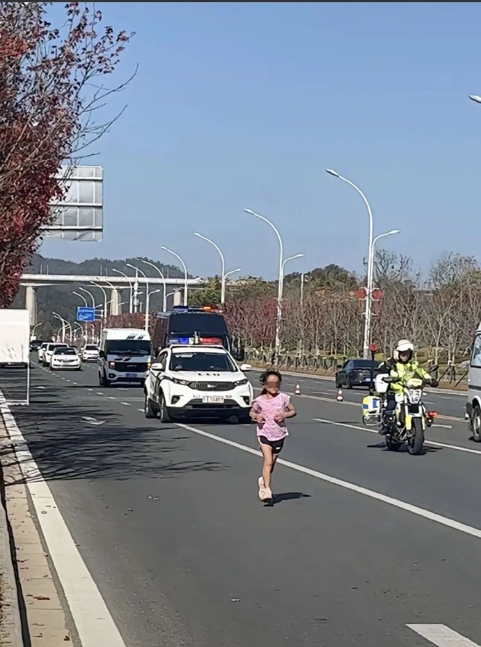 过去一周时间,关于这位6岁小女孩用时6小时完赛全程马拉松的短视频,在社交网络上火了。视频里,这位戴着墨镜、穿着粉红色运动T恤和黑色运动短裤的小女孩,在身旁“关门兔”(以马拉松关门时间完成比赛的领跑员)陪伴下,以及身后收容车和警车的“护卫”下,一直向前奔跑。