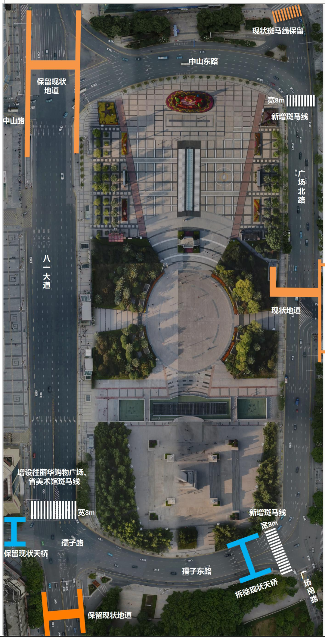 南昌八一广场交通有大变化 新增3条斑马线将于近日开放使用
