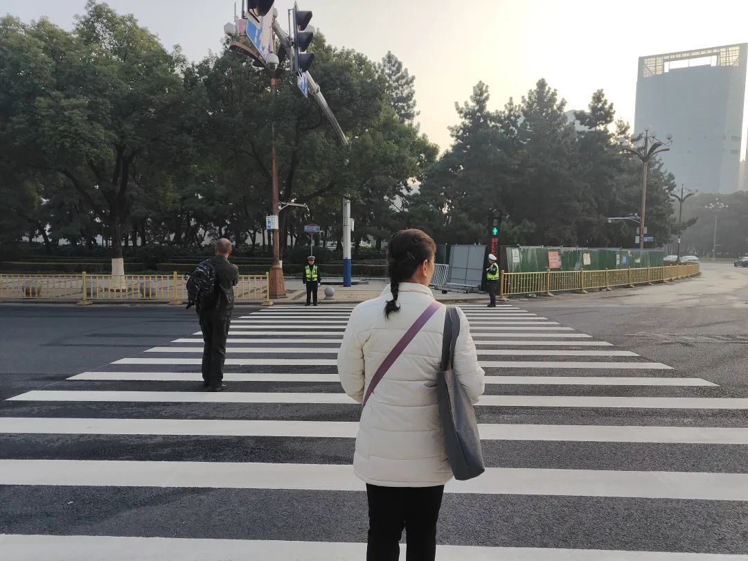 记者在现场看到,新增3条地面过街斑马线周边安排了大量警力,维持交通秩序。