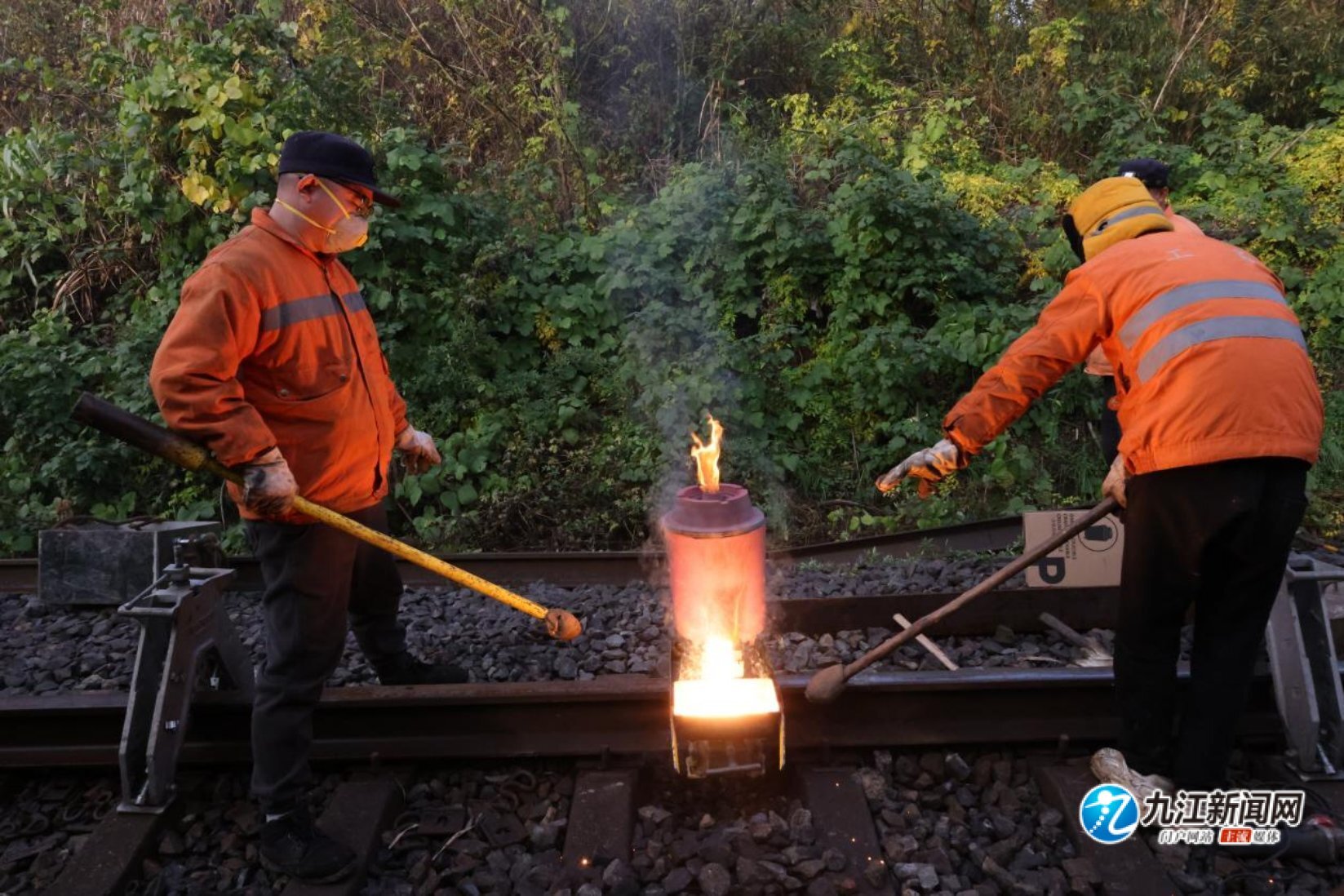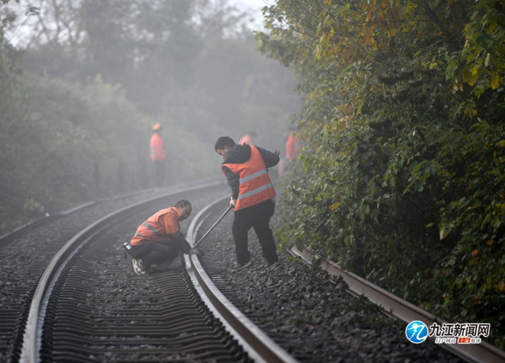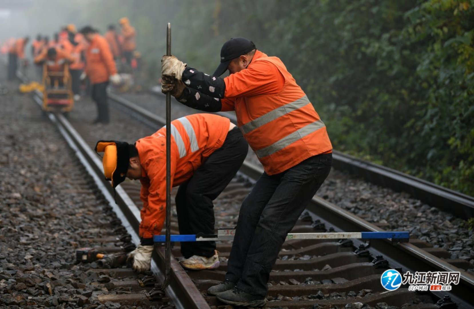 12月6日,南铁九江桥工段组织120多名工人利用“天窗”点对南浔铁路沙浔段进行更换500米长轨施工,并同步实施应力放散作业,进一步提升线路设备的稳定性,确保冬季铁路运输安全。