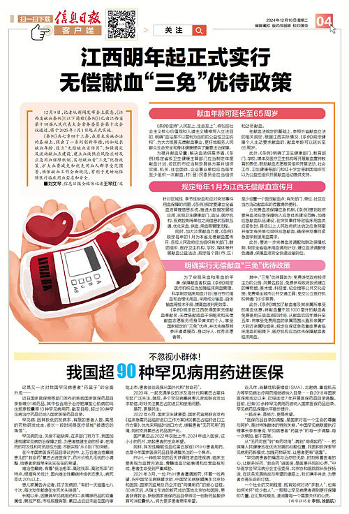 12月9日,记者从新闻发布会上获悉,《江西省献血条例》(以下简称《条例》)已由江西省第十四届人民代表大会常务委员会第十次会议通过,将于2025年1月1日起正式实施。