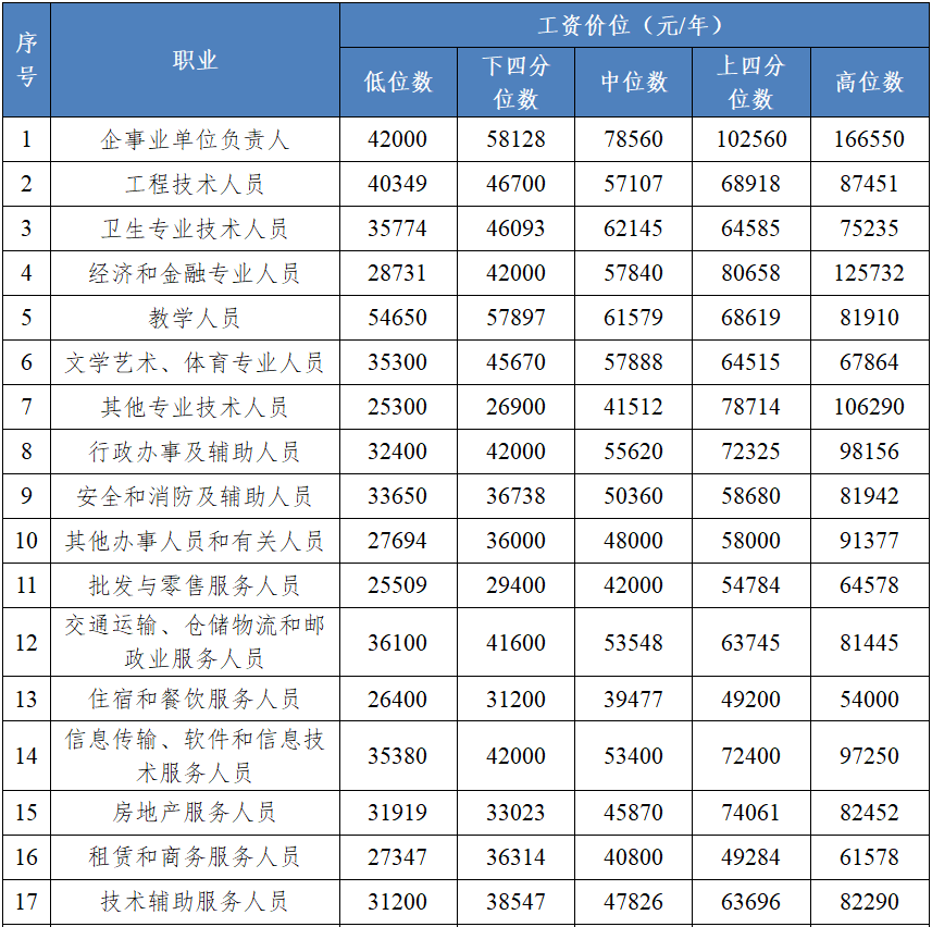 一、本次发布的劳动力市场工资价位包括不同职业(以职业中类为主)从业人员工资价位、不同岗位等级从业人员工资价位数据。