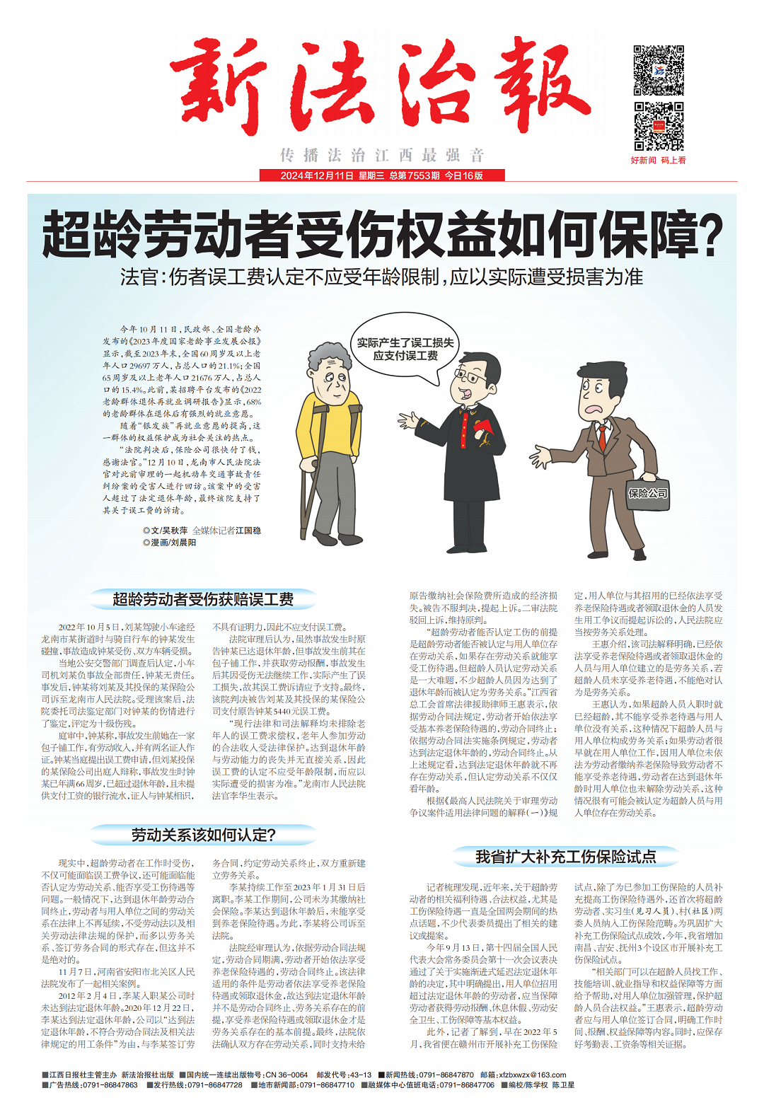 “现行法律和司法解释均未排除老年人的误工费求偿权,老年人参加劳动的合法收入受法律保护。达到退休年龄与劳动能力的丧失并无直接关系,因此误工费的认定不应受年龄限制,而应以实际遭受的损害为准。”龙南市人民法院法官李华生表示。