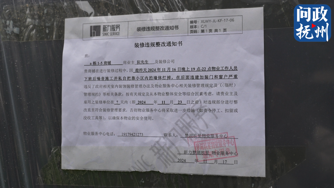 商户私自打通后门的行为是否符合规定?当天,该小区物业管理人员黄昭荣在接受记者采访时表示,该行为属于装修违规,且该商户在准备施工时,物业工作人员便上门阻止,但对方不予理会。 “发现他们在后门施工后,我们第一时间进行了制止,而且在第二天早上还贴了‘装修违规整改通知书’,但对方还是在晚上连夜完工,由于物业没有执法权,希望相关部门能督促该商户进行整改。” 黄昭荣说。