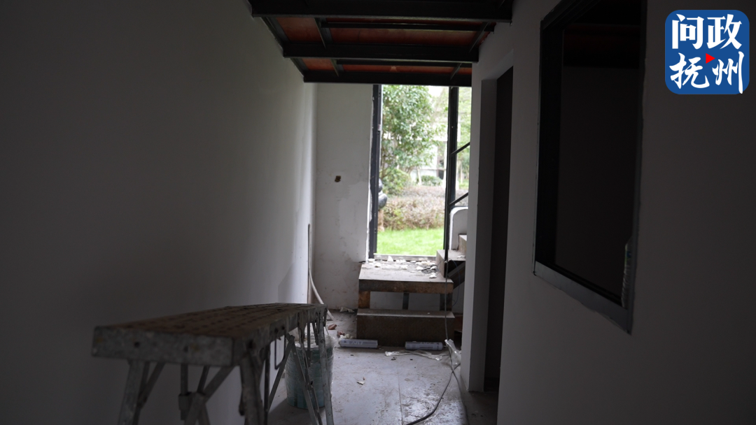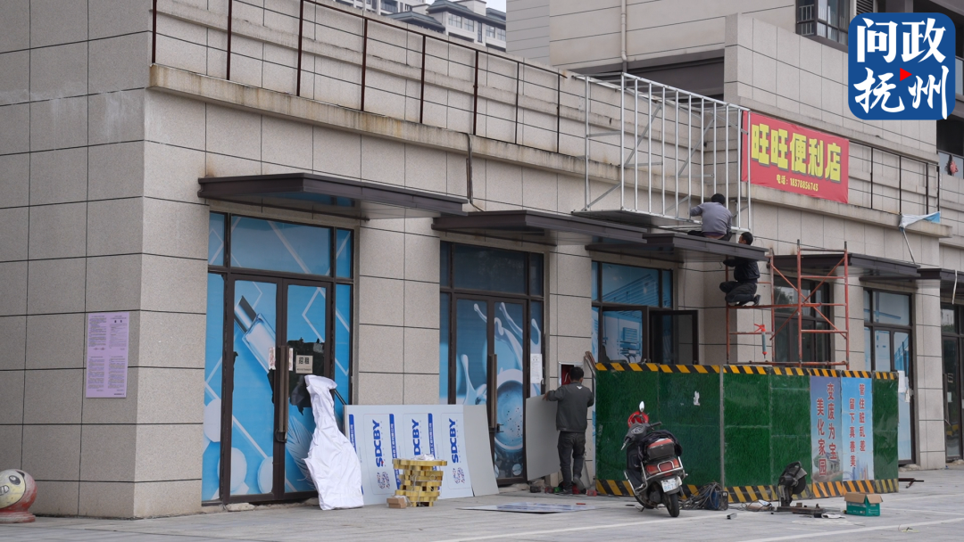 11月底, 记者在位于抚州高新区连樊路的梦湖玖里小区a栋1-5商铺前门看到, 施工人员正在对该商铺进行装修。商铺里面堆放着不少砖块、水泥、钢筋等建筑材料,其中两位工人正在对墙面进行粉刷。