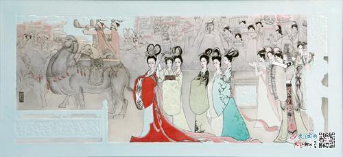2017年,傅长敏花费一年时间创作了3米长卷瓷板画《丝路情缘系列》。她通过回望历史,用汉高祖刘邦的“白登之围”、解忧公主等故事,讲述几千年前中国是如何打造和繁荣丝绸之路,如何让这条连通世界的路走得更通畅。