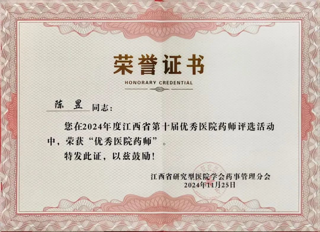 此次获奖充分展现了江西省儿童医院药学部在药学领域的研究实力和丰厚成果,更是对医院药学工作的肯定和鼓励。今后,药学部将继续致力于药学领域的研究和实践,为广大患者提供更加安全、有效、高质量的药学服务。(易鹏飞)