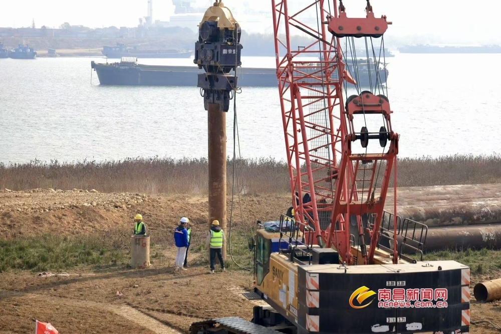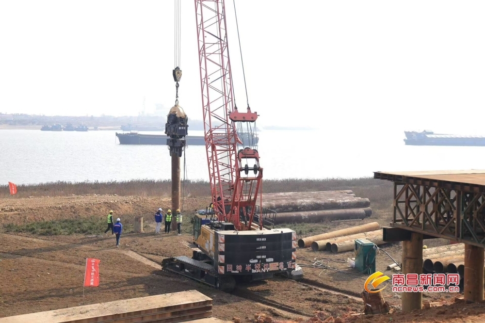 南昌新闻网讯 12月24日上午,赣江新区汇贤大桥工程开工,建设方正在进行栈桥桩基施工。