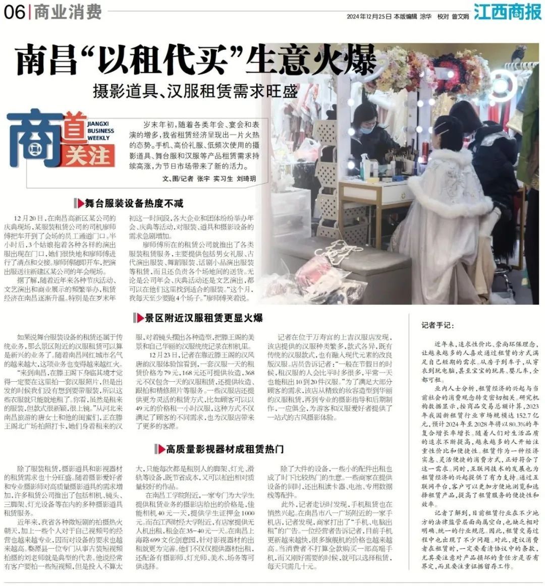 据了解,随着近年来各种节庆活动、文艺演出和商业展示的频繁举办,租赁经济在南昌逐渐升温。特别是在岁末年初这一时间段,各大企业和团体纷纷举办年会、庆典等活动,对服装、道具和摄影设备的需求急剧增加。