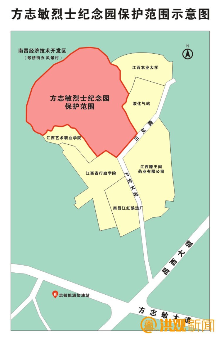 据了解,南昌市方志敏烈士纪念园保护范围以原南昌市方志敏烈士陵园规划红线为基准(即纪念园围墙)划定,东至方志敏大道三支路,南至江西艺术职业学院、江西省行政学院,西至南昌经济技术开发区风景村,北至江西农业大学,保护范围面积为90602.3平方米。主管部门为南昌市退役军人事务局,管理责任单位为南昌市方志敏烈士纪念园。