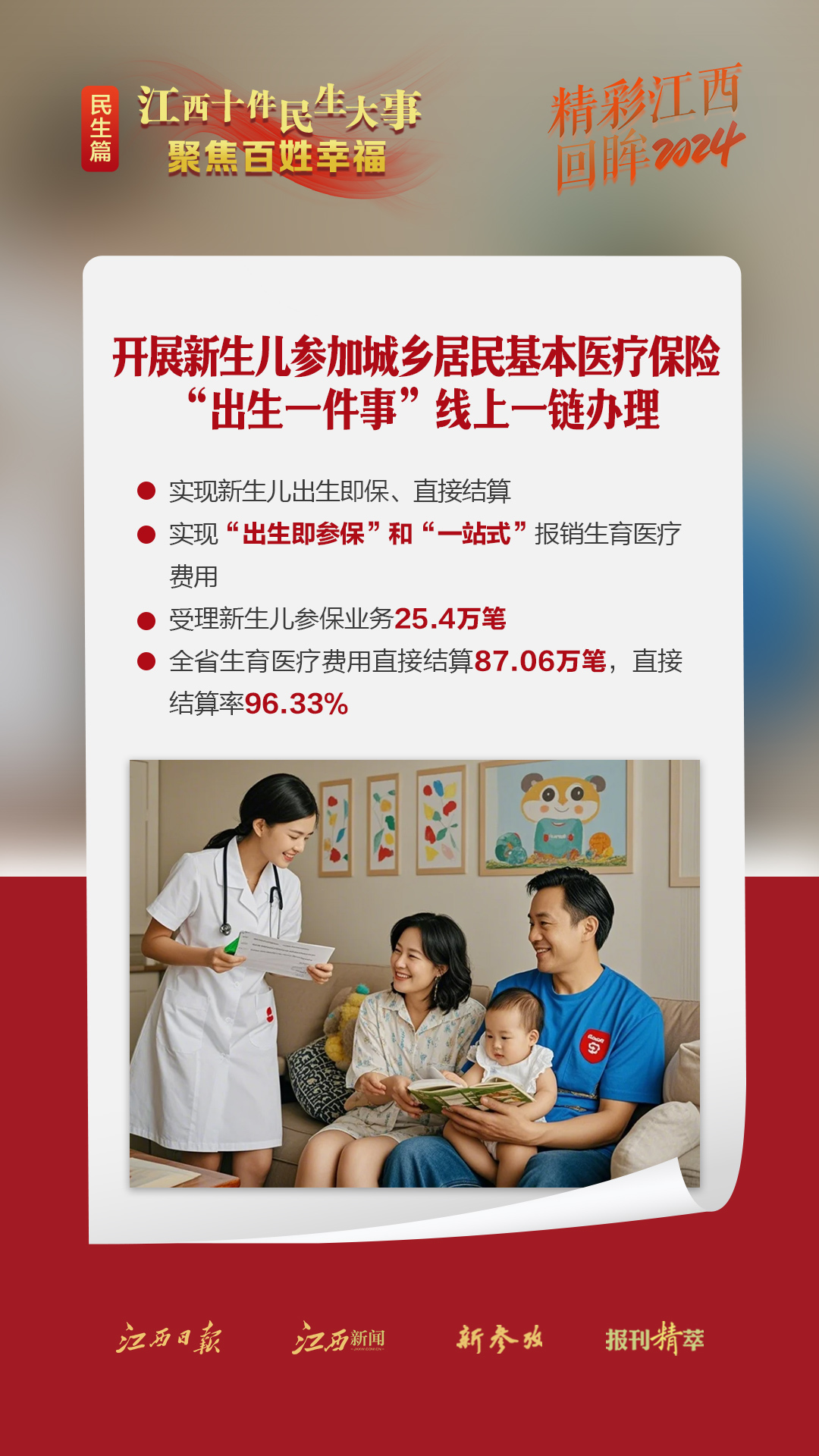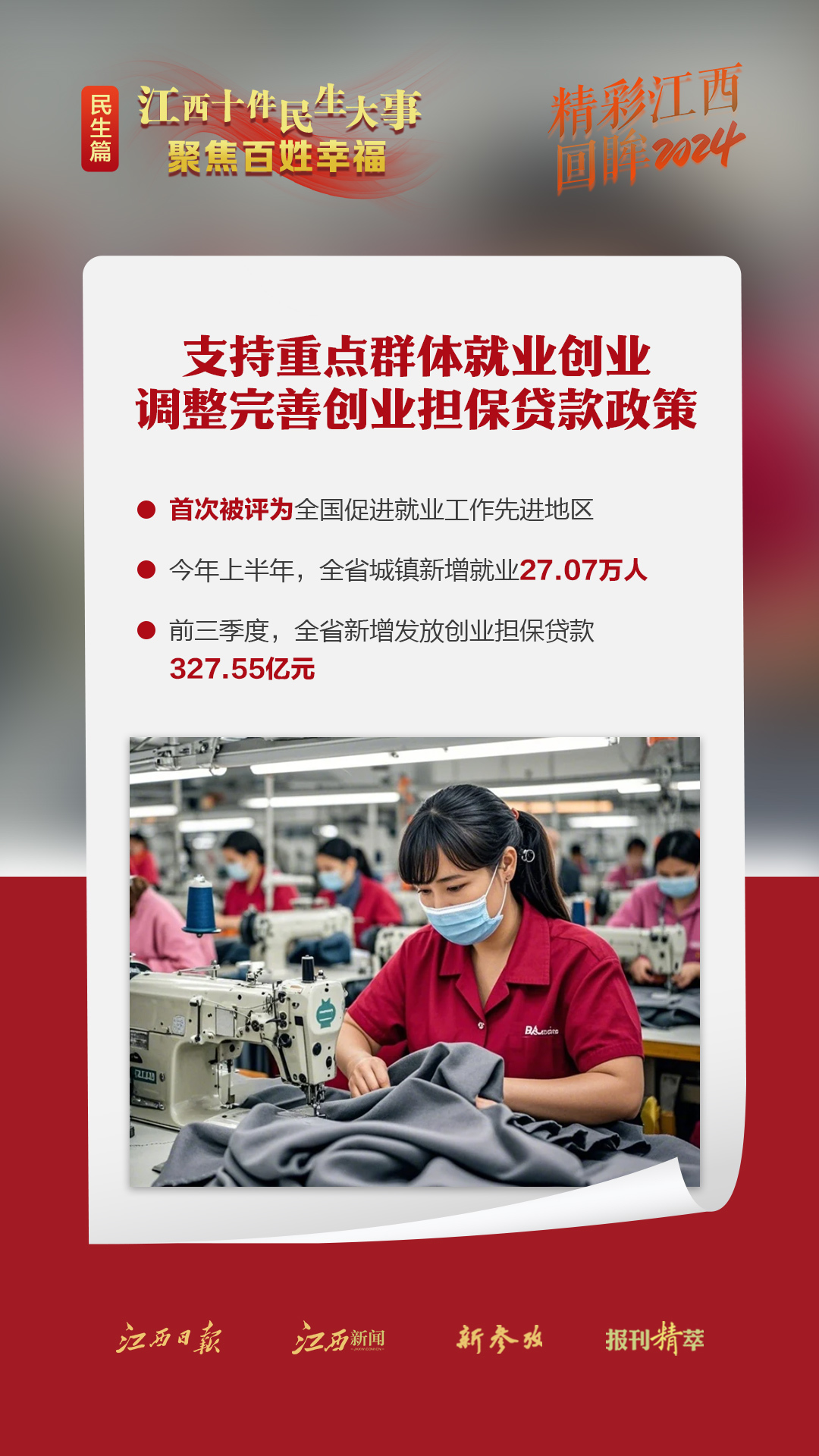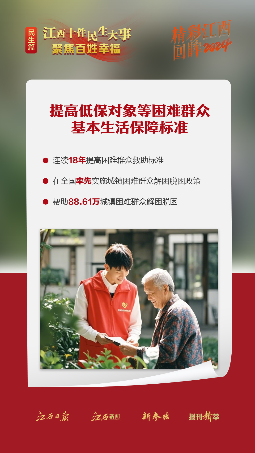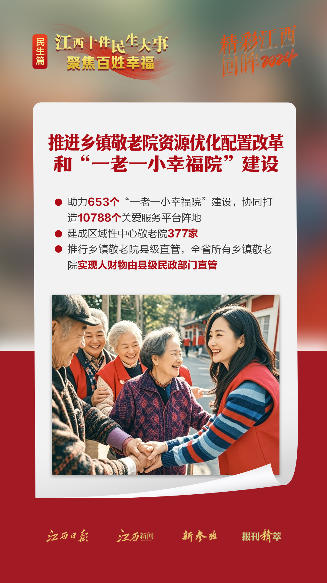 中国式现代化,民生为大。回望2024年,全省上下采取更加有力的措施保障和改善民生,持续增进老区人民福祉,扎实推进共同富裕,不断增强人民群众的获得感、幸福感、安全感。