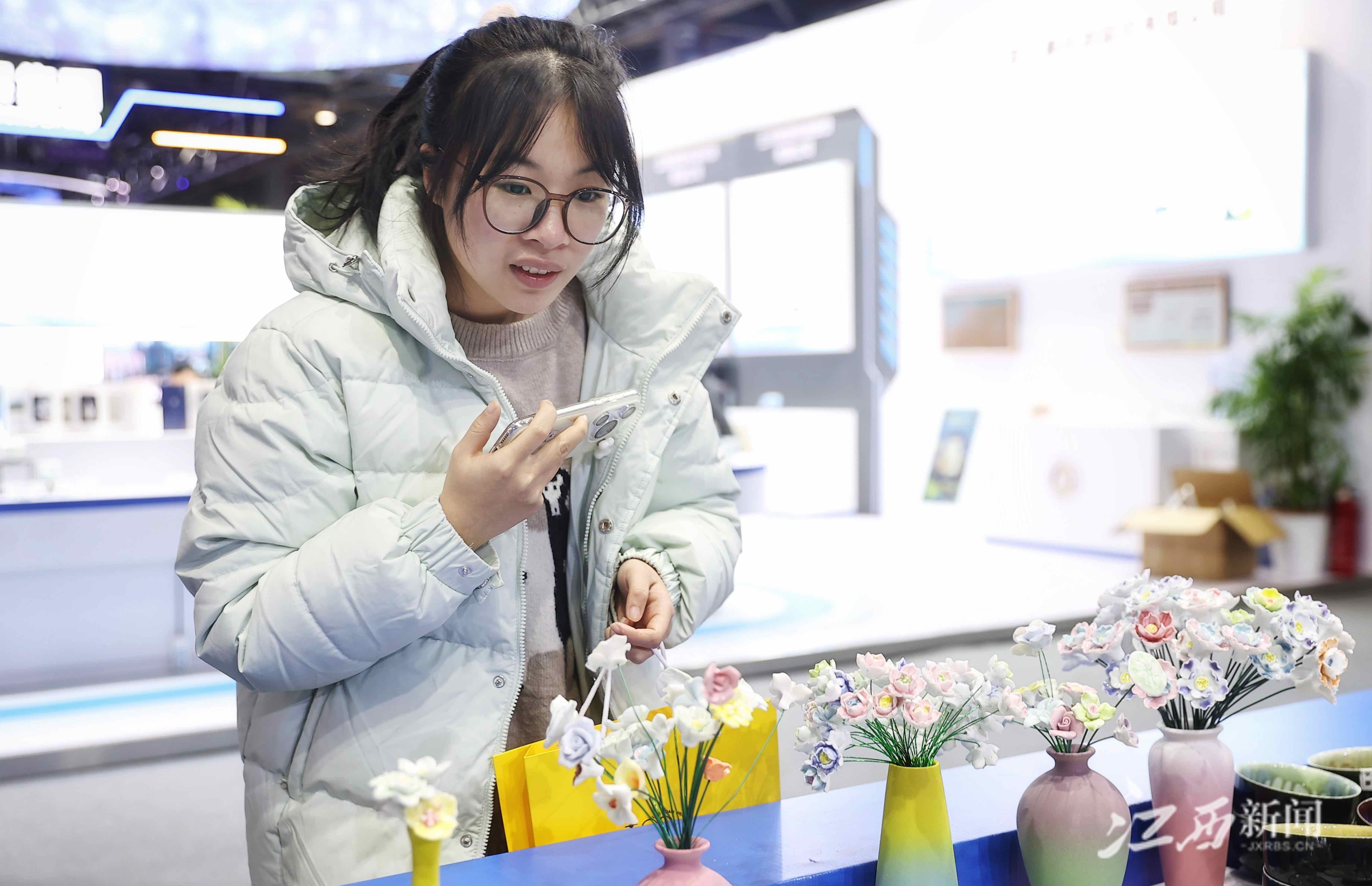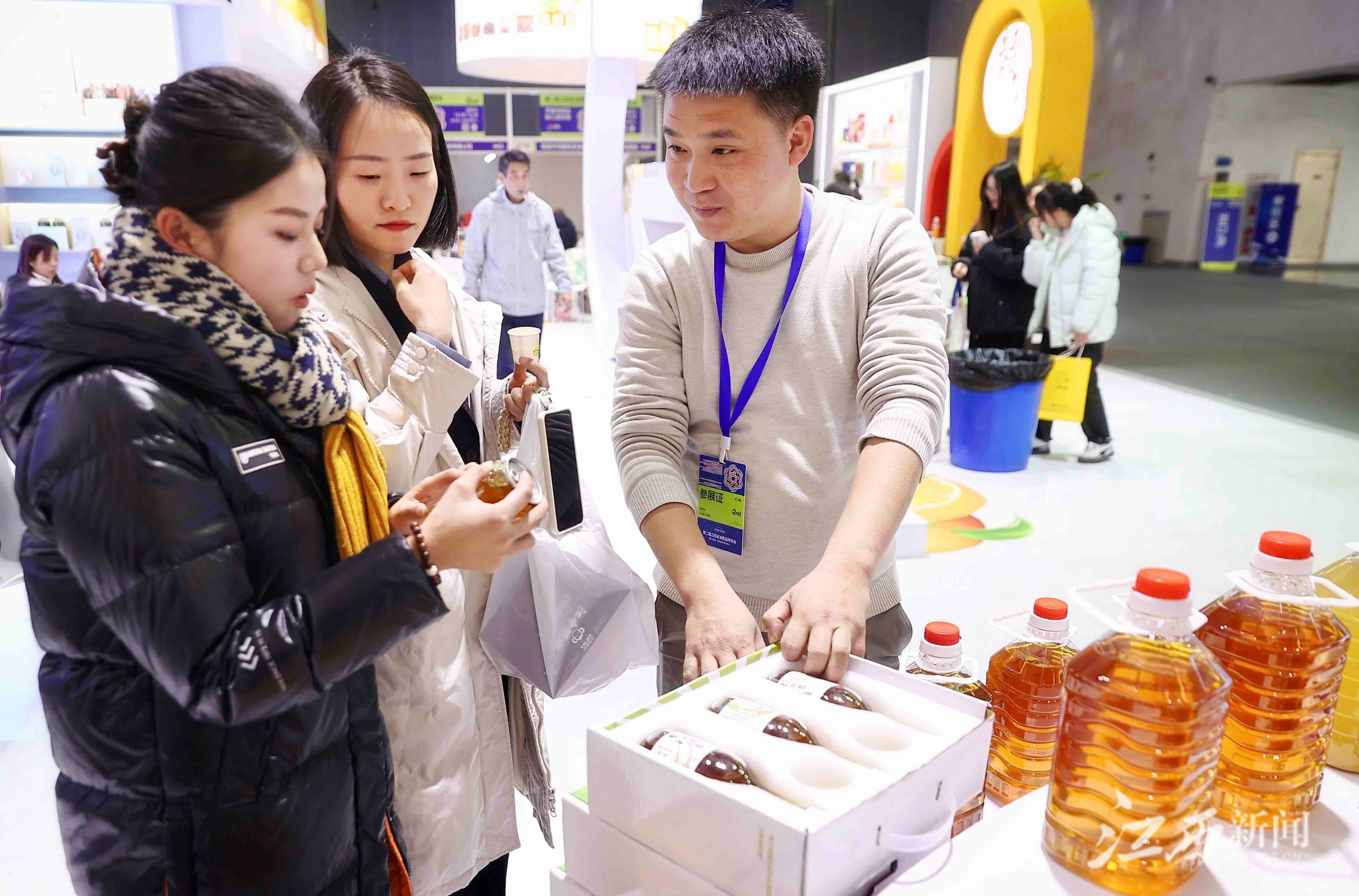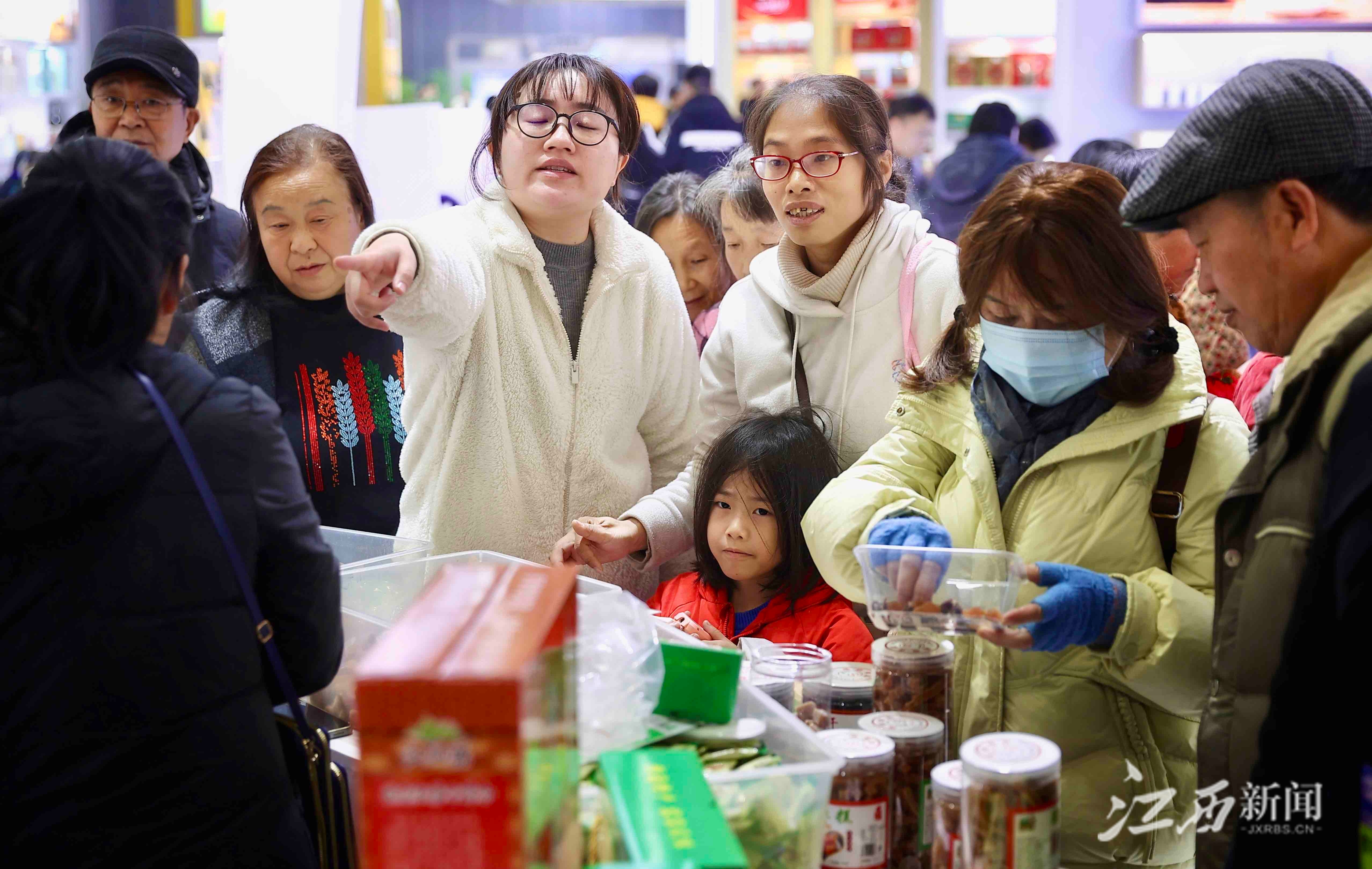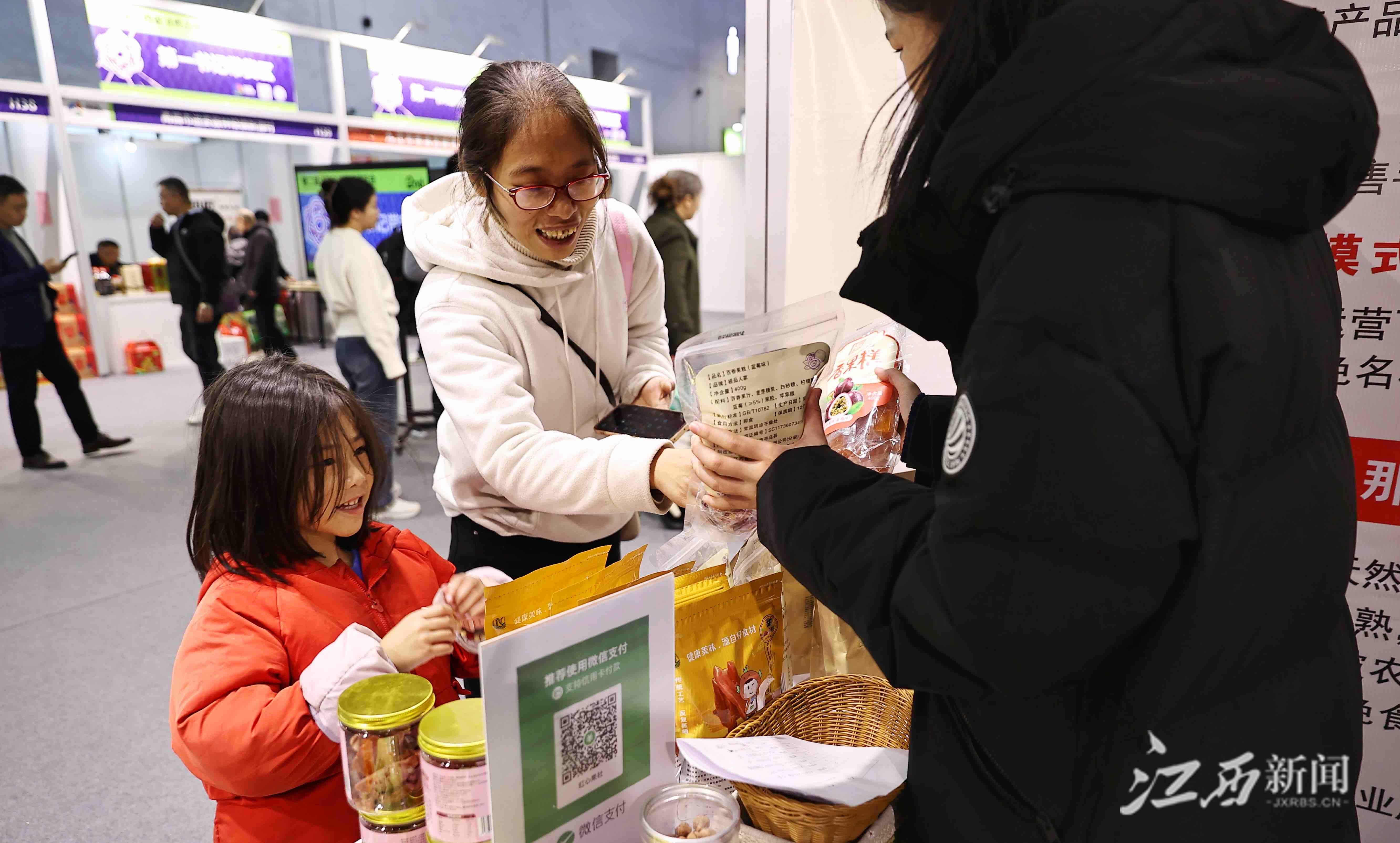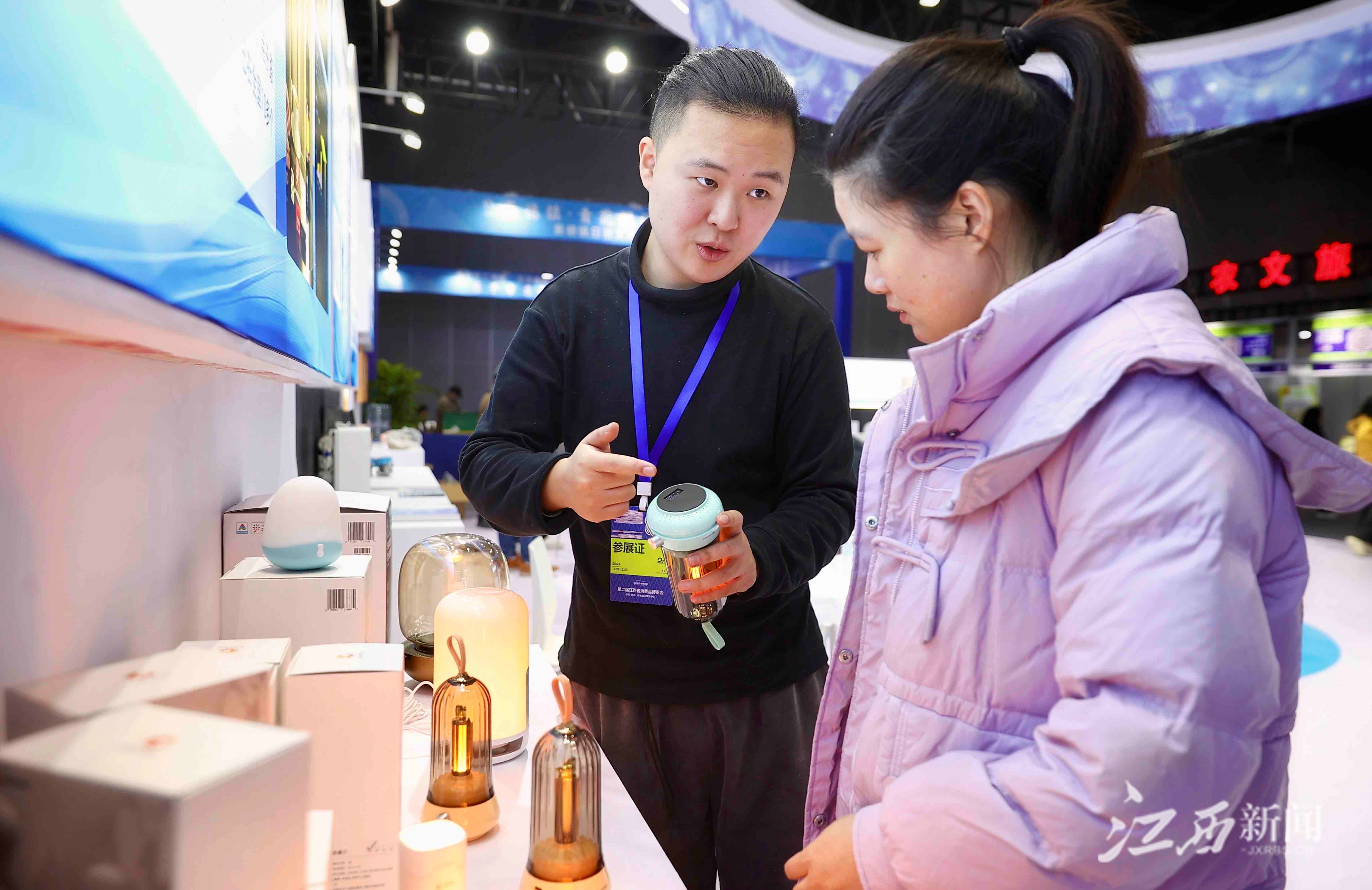 江西新闻客户端讯(江西日报全媒体记者徐铮 史港泽 蔡铖歌) 12月28日,南昌绿地国际博览中心,在开设的第一书记带货区,来自万安增仚村的第一书记胡国权正向市民推介农家土特产品。寻赣地精品,购江西好物,12月28日至30日,第二届江西省消费品博览会在南昌举行,地域特色浓郁的产品琳琅满目,造型新颖独特的文创五花八门,吸引了许多消费者前来选购。